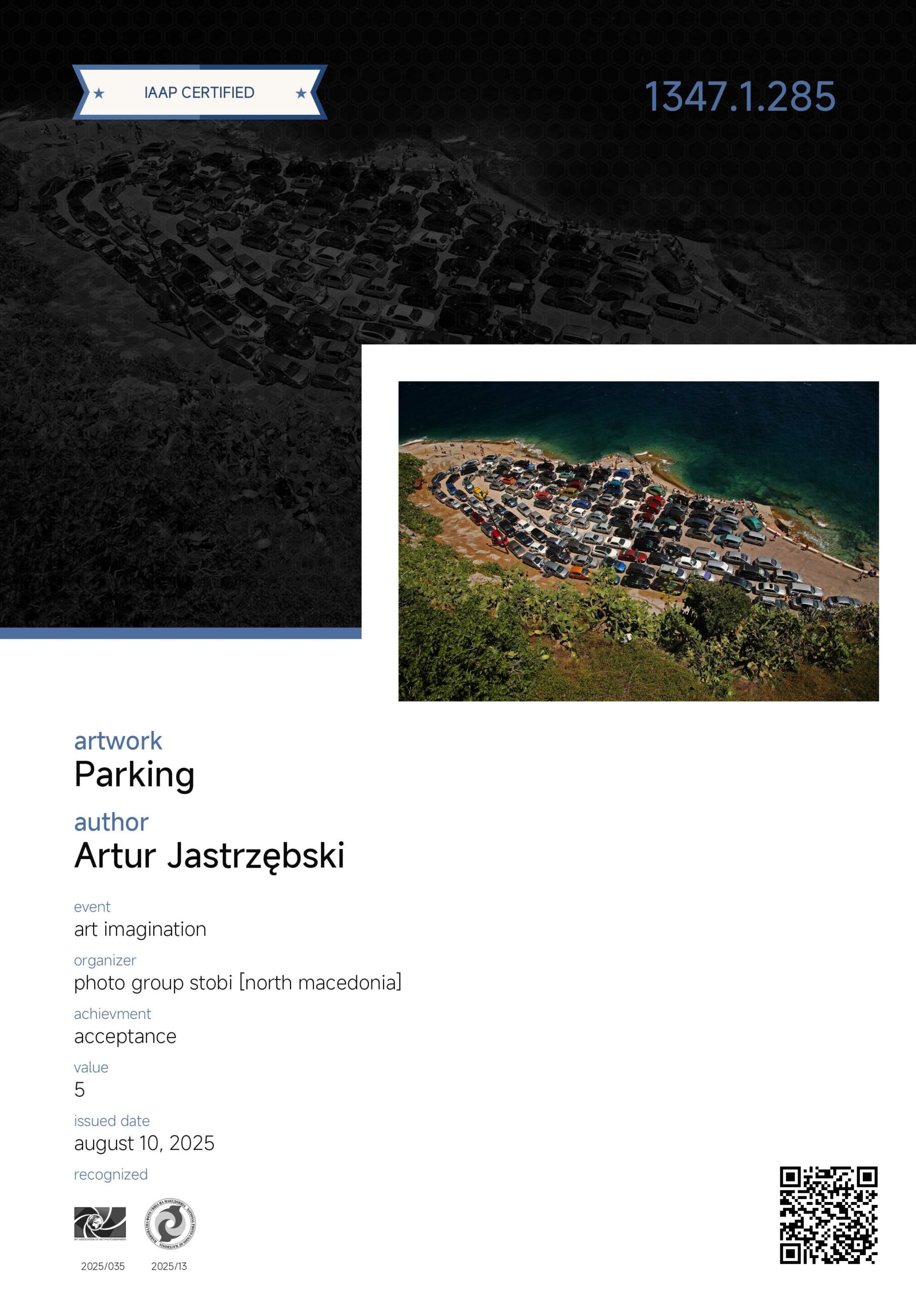 Zdjęcia z cyklu „Osiedle Z” i „Parking” otrzymały „akceptacje” w międzynarodowym konkursie fotograficznym ART IMAGINATION organizowanym przez północnomacedoński Photo group Stobi.