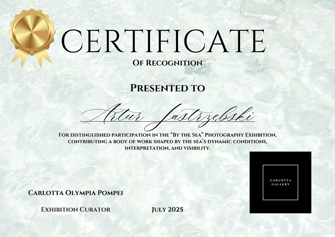 Zdjęcie „Parking” zostało zakwalifikowane do międzynarodowej internetowej wystawy zbiorowej BY THE SEA. Ekspozycja prezentowana jest od 18 lipca 2025 roku w Carlotta Gallery w Wielkiej Brytanii. Kuratorem przedsięwzięcia jest Carlotta Olympia Pompei.
