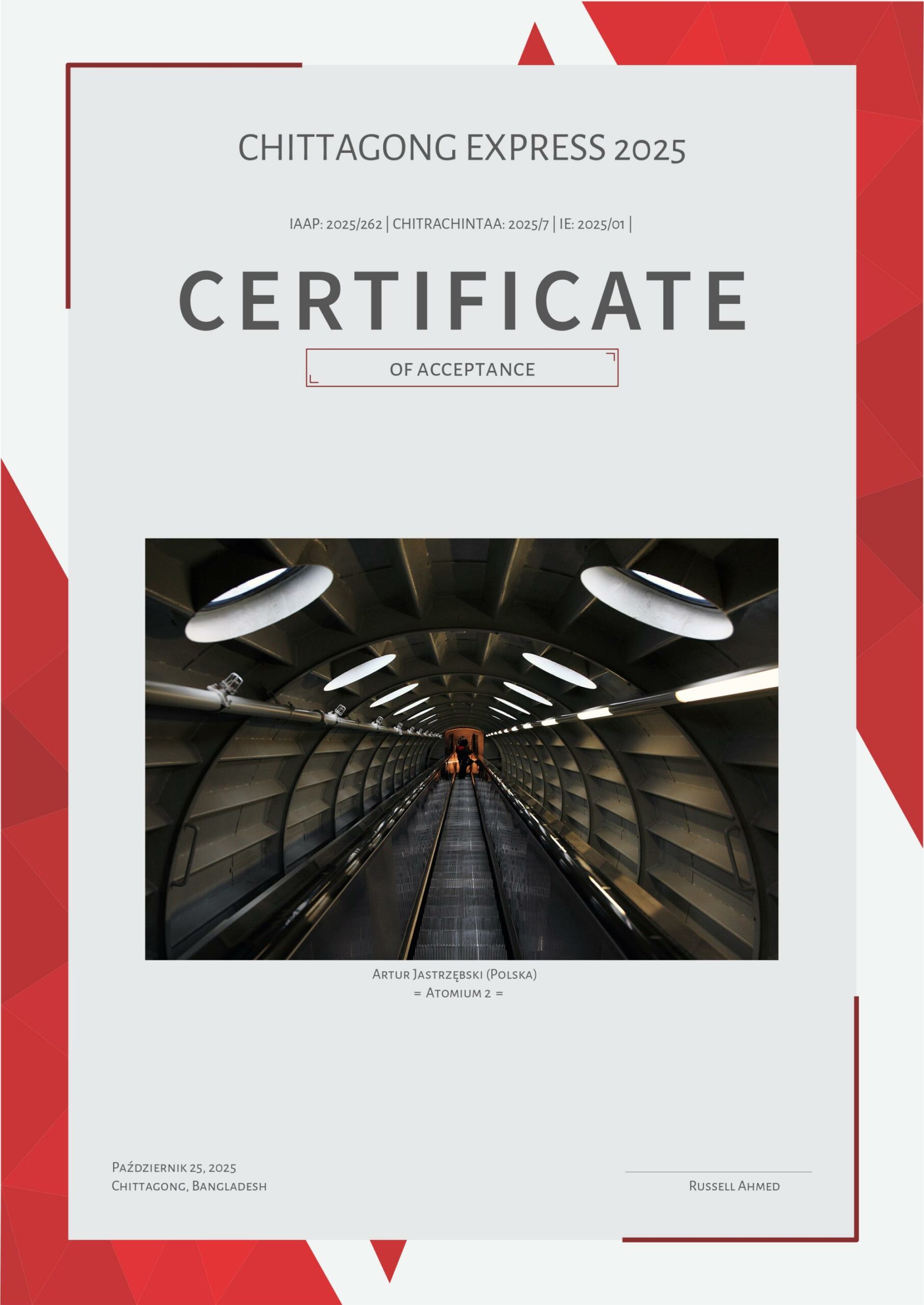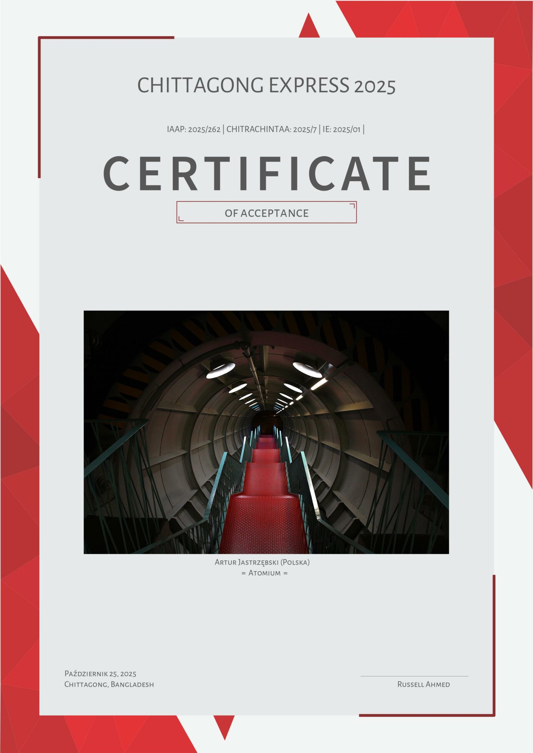 Zdjęcia „Atomium” otrzymały „akceptacje” w międzynarodowym konkursie fotograficznym CHITTAGONG EXPRESS 2025 organizowanym przez bangladeski Chitrachintaa.