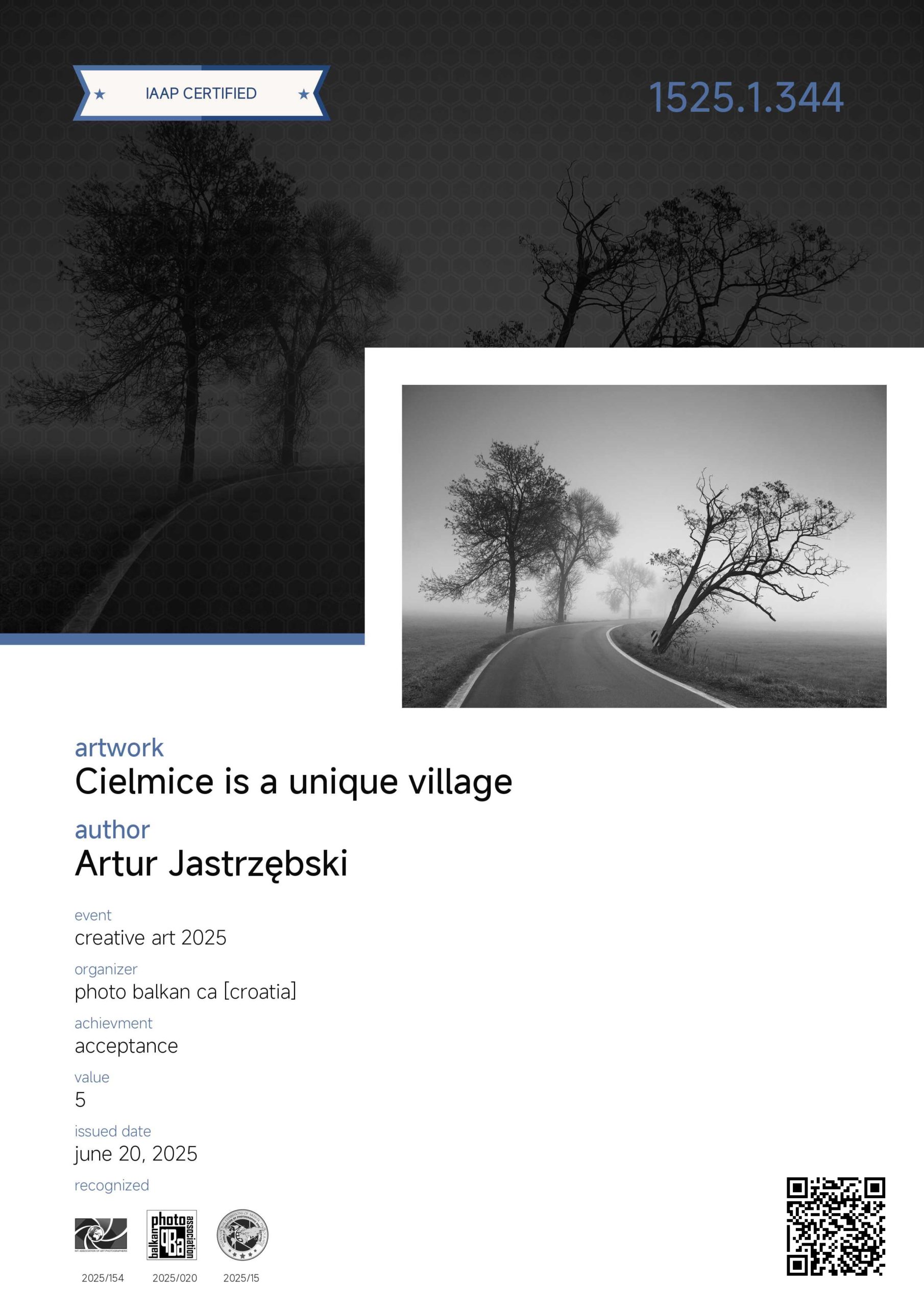 Zdjęcia z cyklu „Cielmice wieś wyjątkowa” i „Impresje paprocańskie” otrzymały „akceptacje” w międzynarodowym konkursie fotograficznym CREATIVE ART 2025 organizowanym przez chorwacki Photo MAG i Photo Balkan Association.