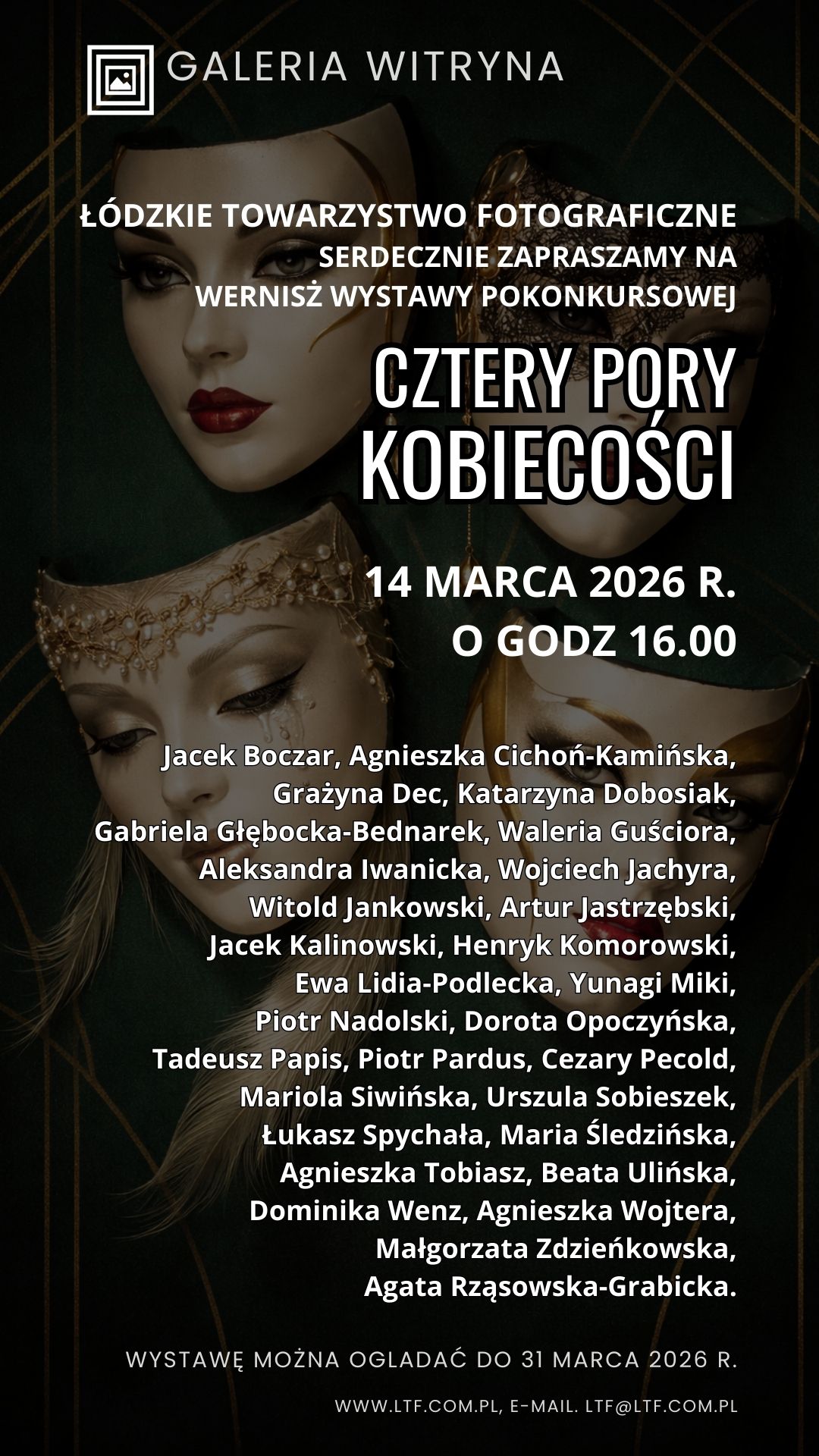 Zapraszam na wystawę pokonkursową „CZTERY PORY KOBIECOŚCI” na której m.in. będzie można zobaczyć moje zdjęcie „Bella”. Ekspozycja prezentowana będzie do 31 marca 2026 roku w Galerii Witryna w Łodzi.