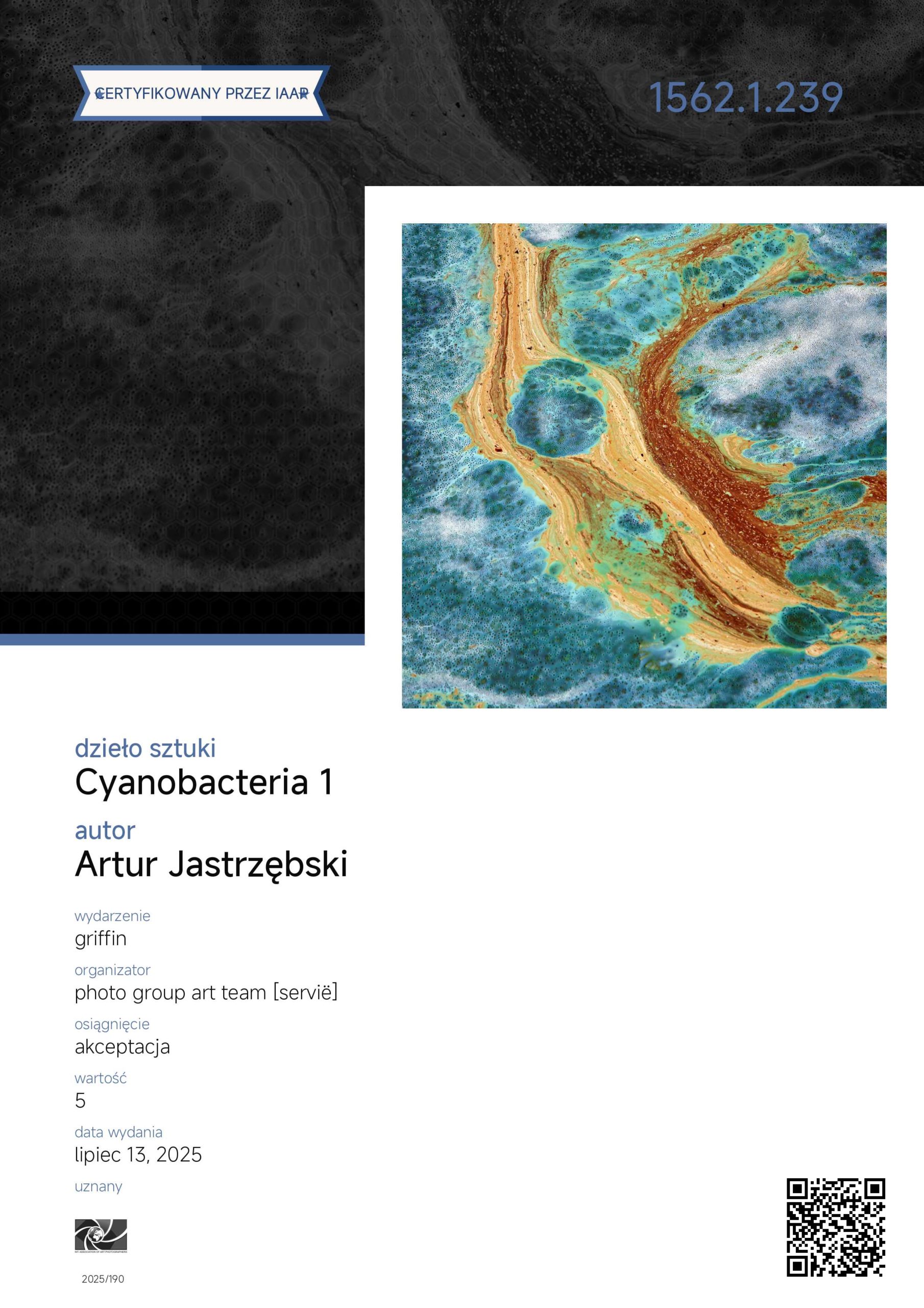 Zdjęcie z cyklu „Sinice” otrzymało „akceptację” w międzynarodowym konkursie fotograficznym Griffin organizowanym przez serbski photo group Art Team.