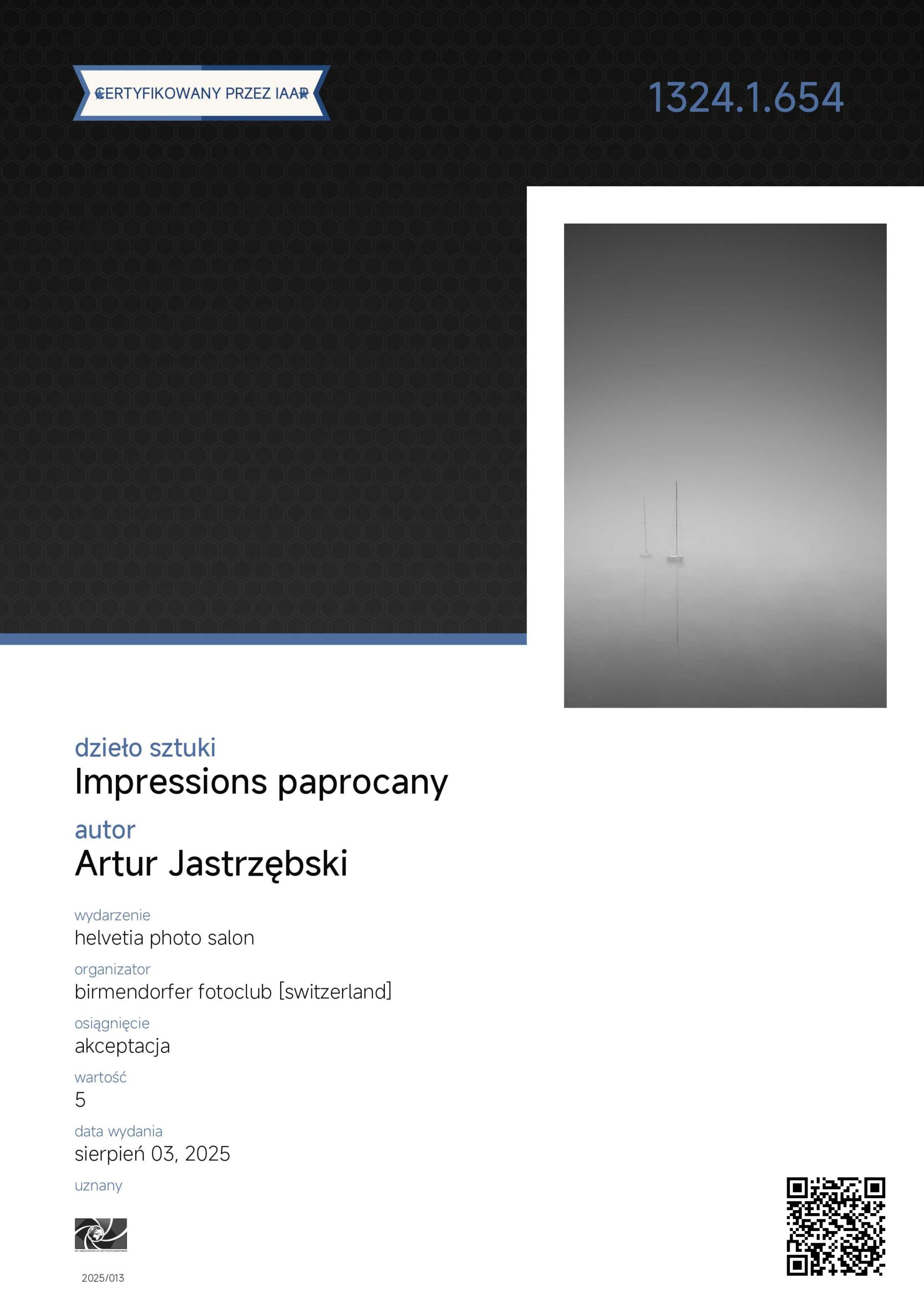 Zdjęcia z cyklu „Impresje paprocańskie” i „Sinice” otrzymały „akceptacje” w międzynarodowym konkursie fotograficznym Helvetia Photo Salon organizowanym przez szwajcarski Birmendorfer Fotoclub.