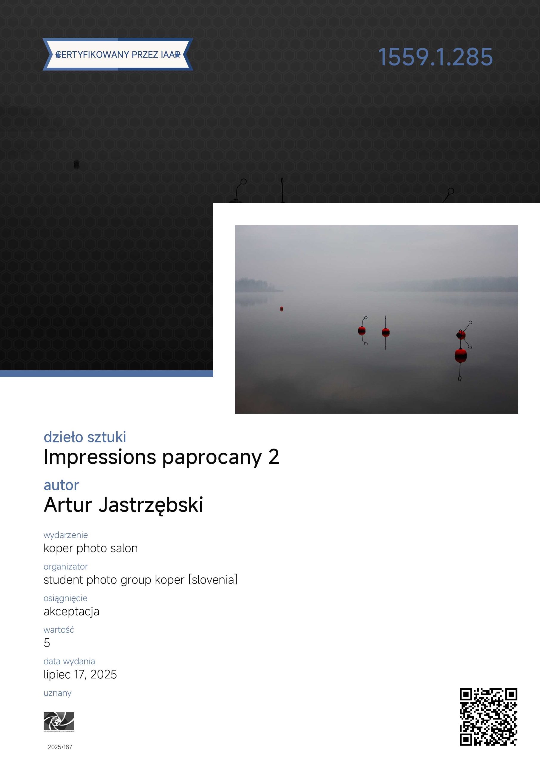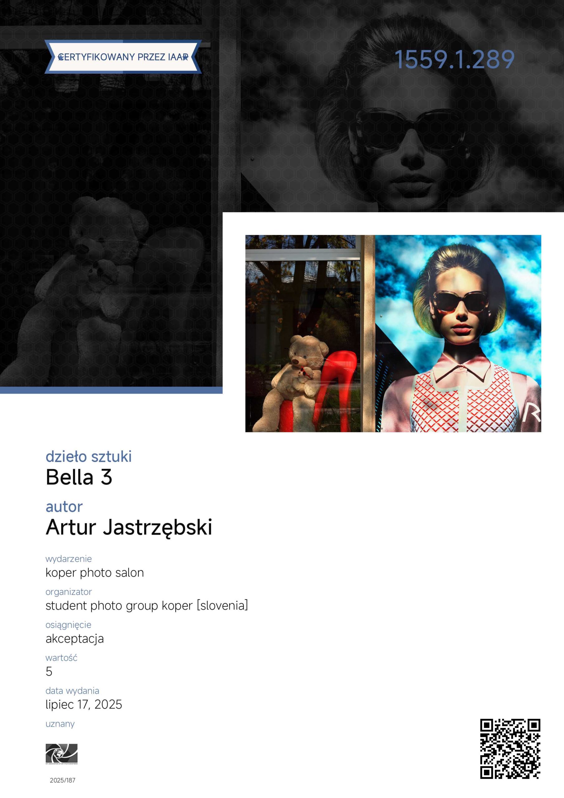 Zdjęcie z cyklu „Impresje paprocańskie” i „Wielka woda w Paprocanach” oraz „Bella 3” otrzymały „akceptacje” w międzynarodowym konkursie fotograficznym Koper Photo Salon organizowanym przez słoweński Student Photo Group Koper.