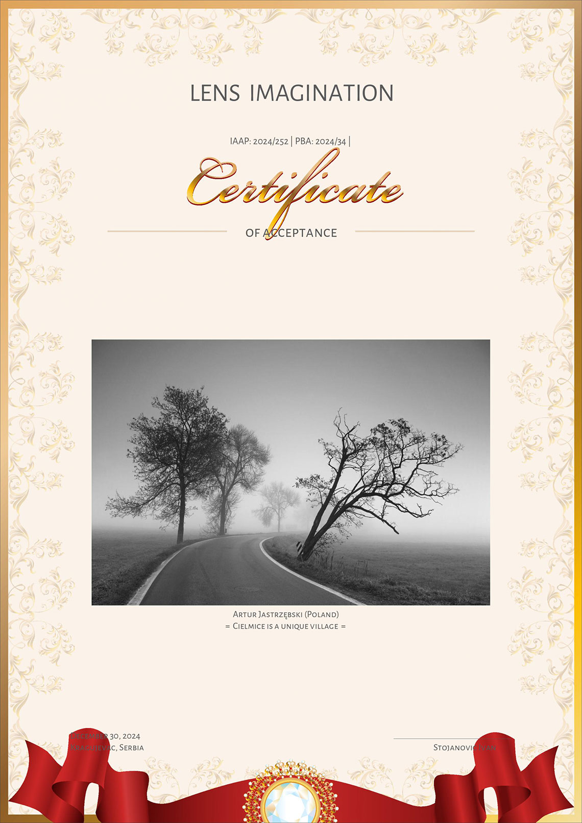 Zdjęcia z cyklu „Cielmice wieś wyjątkowa” i „Trójkolorowi” otrzymały „akceptację” w międzynarodowym konkursie fotograficznym LENS IMAGINATION organizowanym przez serbski Foto klub Objektiv.