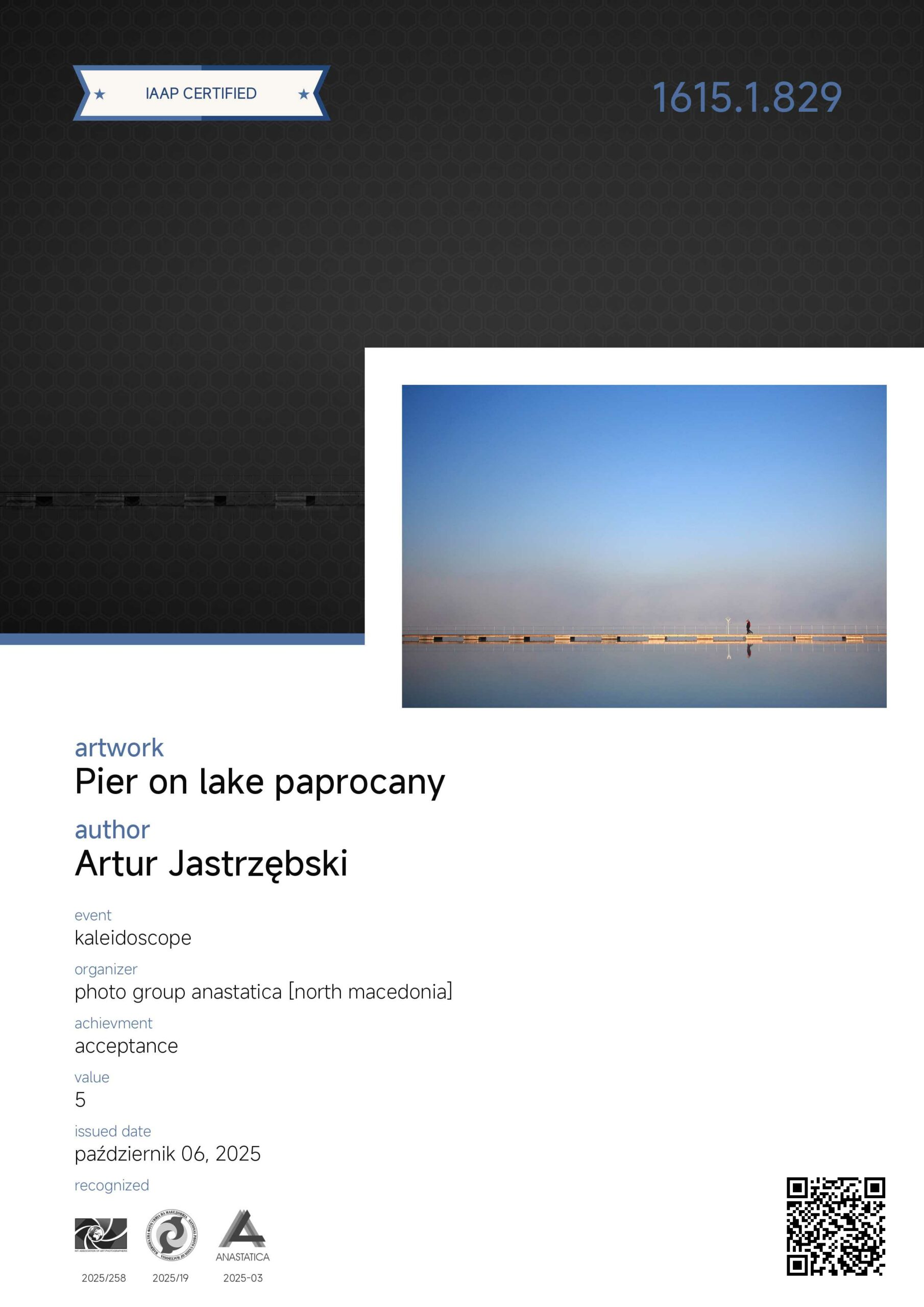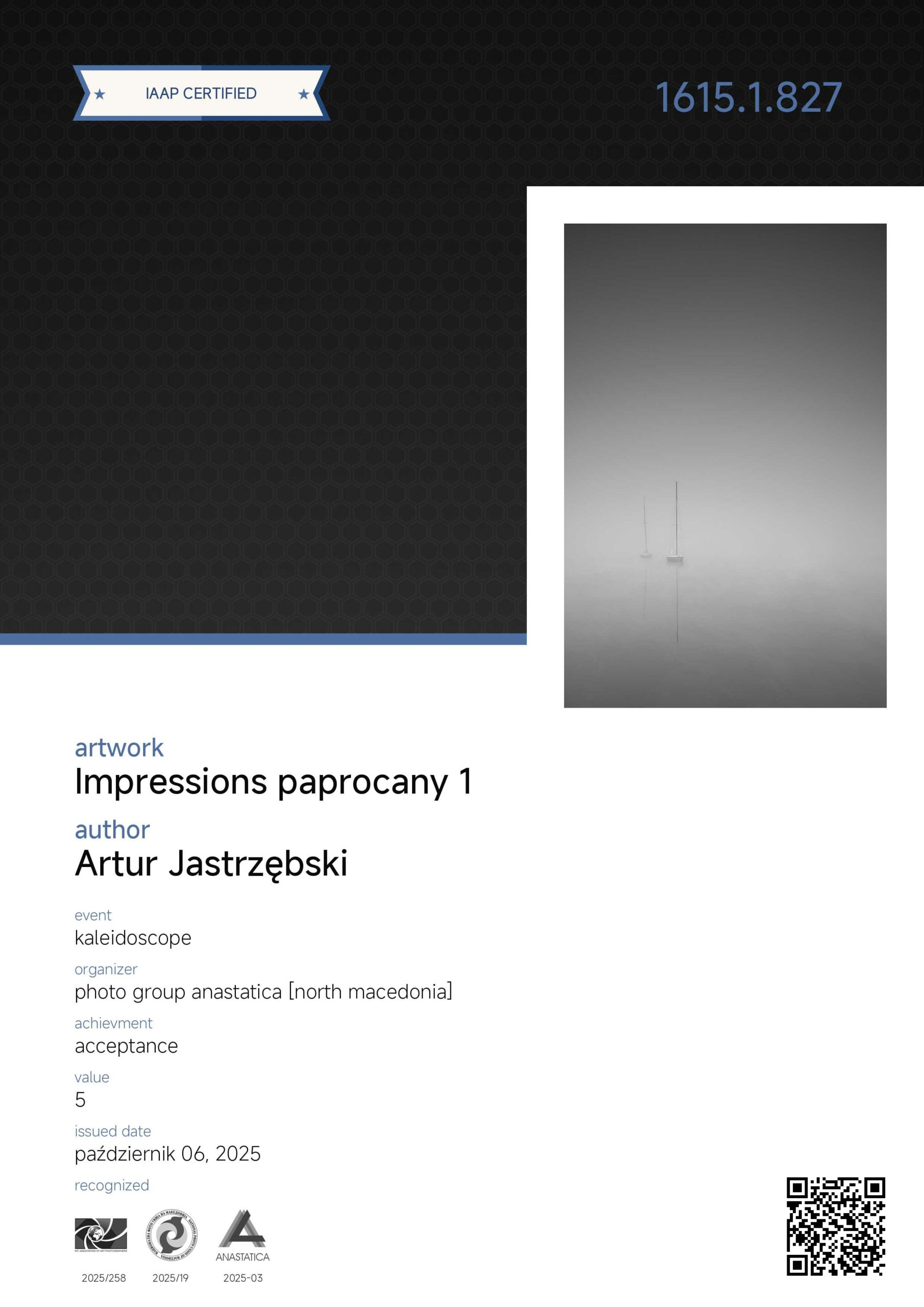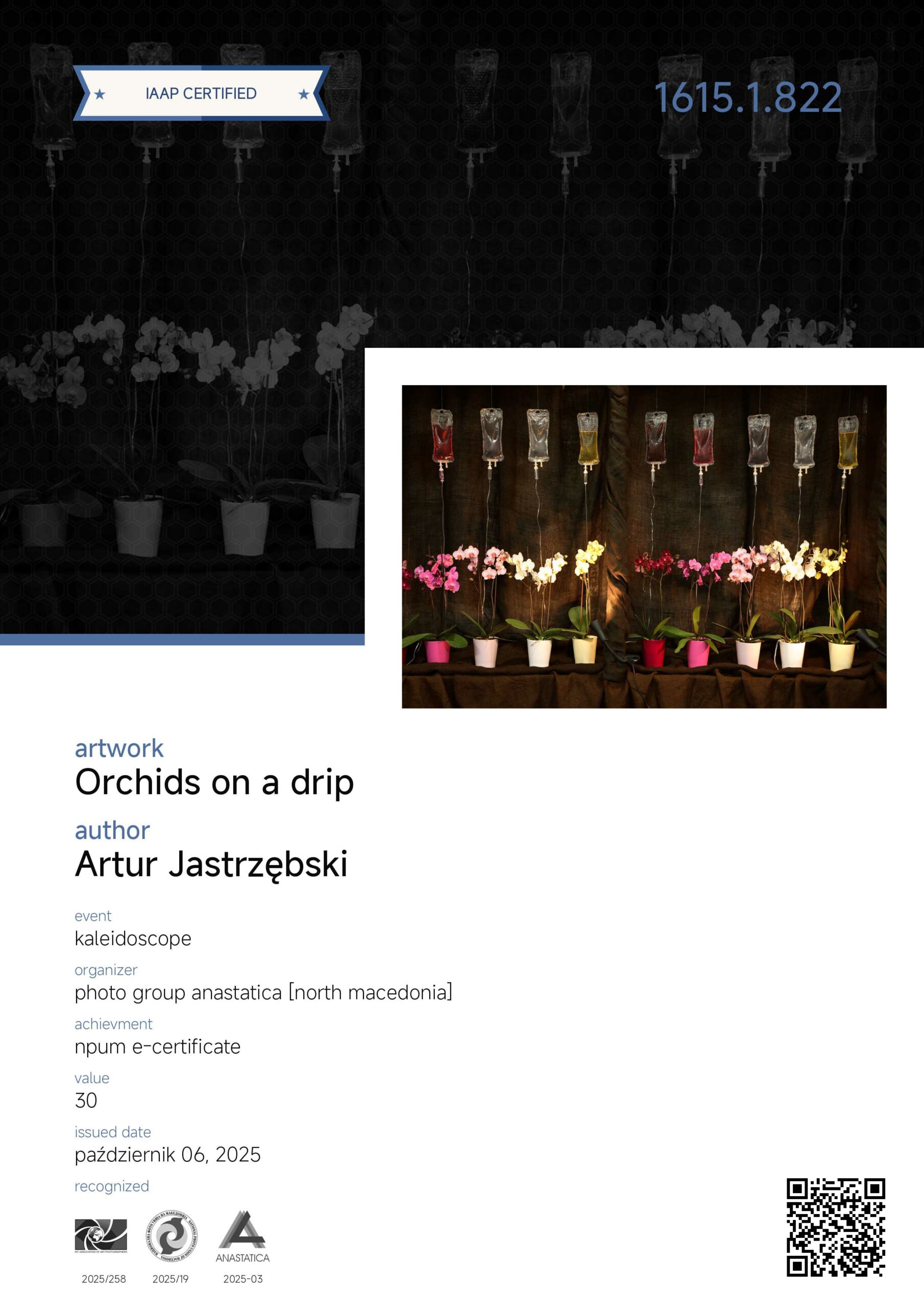 Zdjęcie „Orchidee pod kroplówką” otrzymało nagrodę (NPUM E-Certificate) w kategorii CONCEPTUAL/CREATIVE. Ponadto fotografie z serii „GabiJoga” i „Impresje paprocańskie” oraz „Pomost na Jeziorze Paprocańskim” osiągnęły „akceptacje” w międzynarodowym konkursie fotograficznym Kaleidoscope organizowanym przez północnomacedoński Photo group Anastatica.