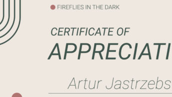Podziękowania od Jovana Svorcana (Out Of Concept) za udział w humanitarnym konkursie fotograficznym FIREFLIES IN THE DARK. Opłata w całości została przekazana serbskiemu stowarzyszeniu „Svici u mraku”, które wspiera działania na rzecz dzieci i osób z autyzmem.