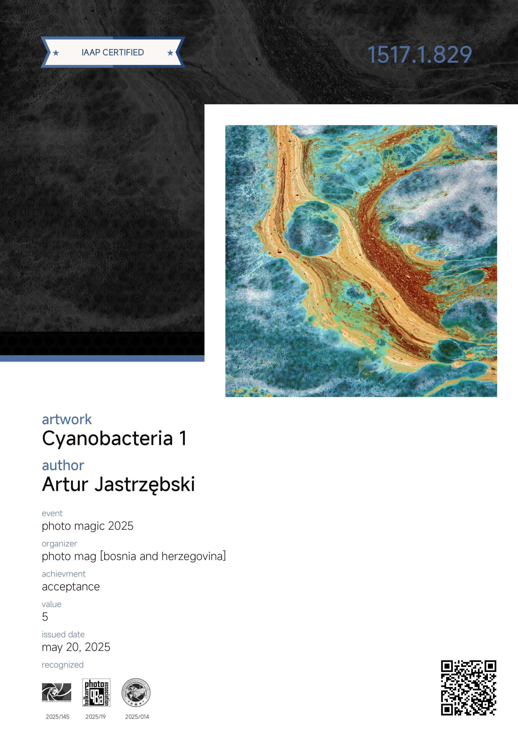 Zdjęcie z cyklu „Sinice” otrzymało „akceptację” w międzynarodowym konkursie fotograficznym Photo Magic 2025 organizowanym przez bośniacki PhotoMAG i Photo Balkan Association.