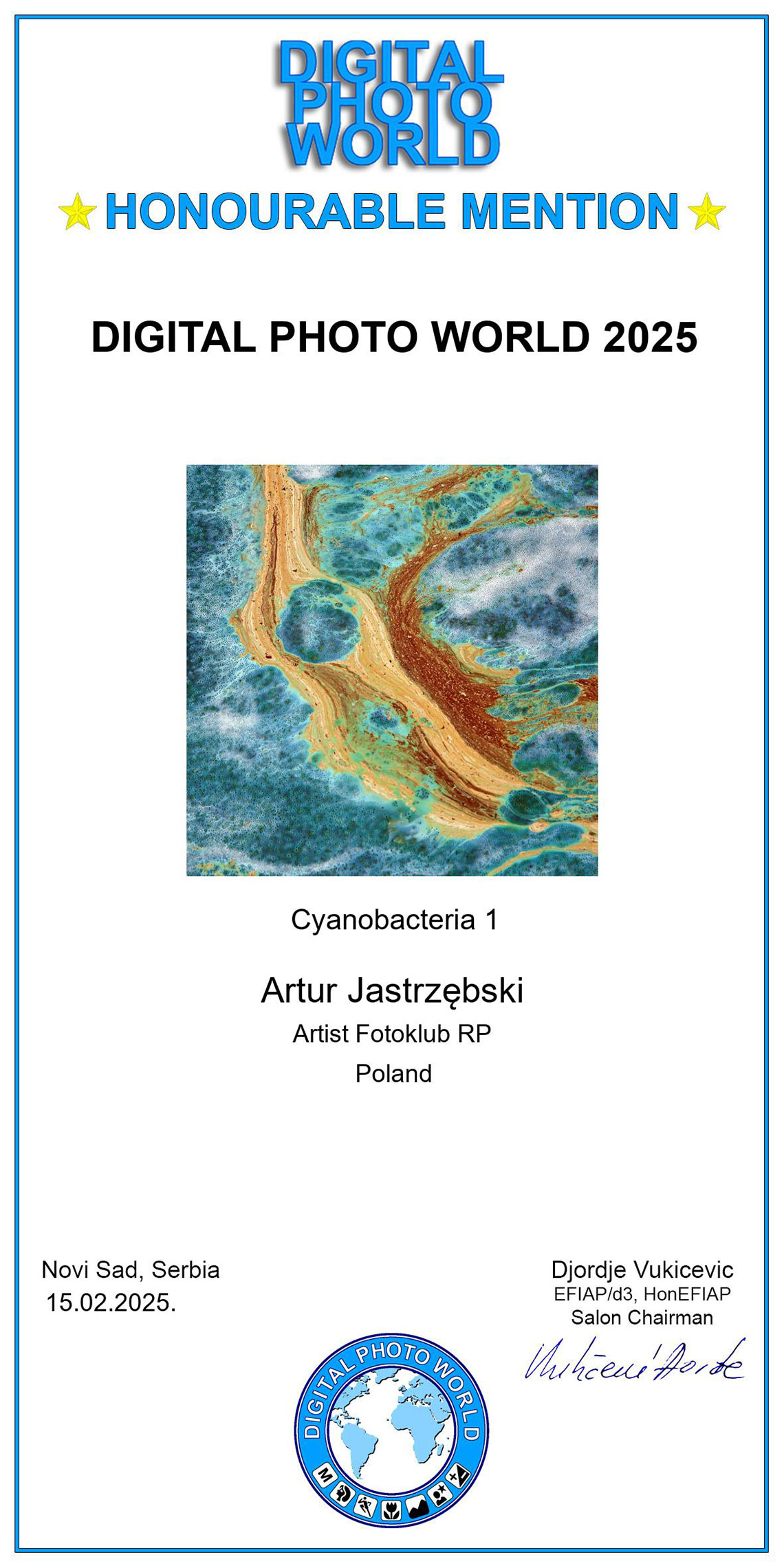 Zdjęcie z cyklu „Sinice” otrzymało wyróżnienie honorowe (Salon HM) w kategorii NATURE w międzynarodowym konkursie fotograficznym „DIGITAL PHOTO WORLD 2025” organizowanym przez serbski Digital Photo World.