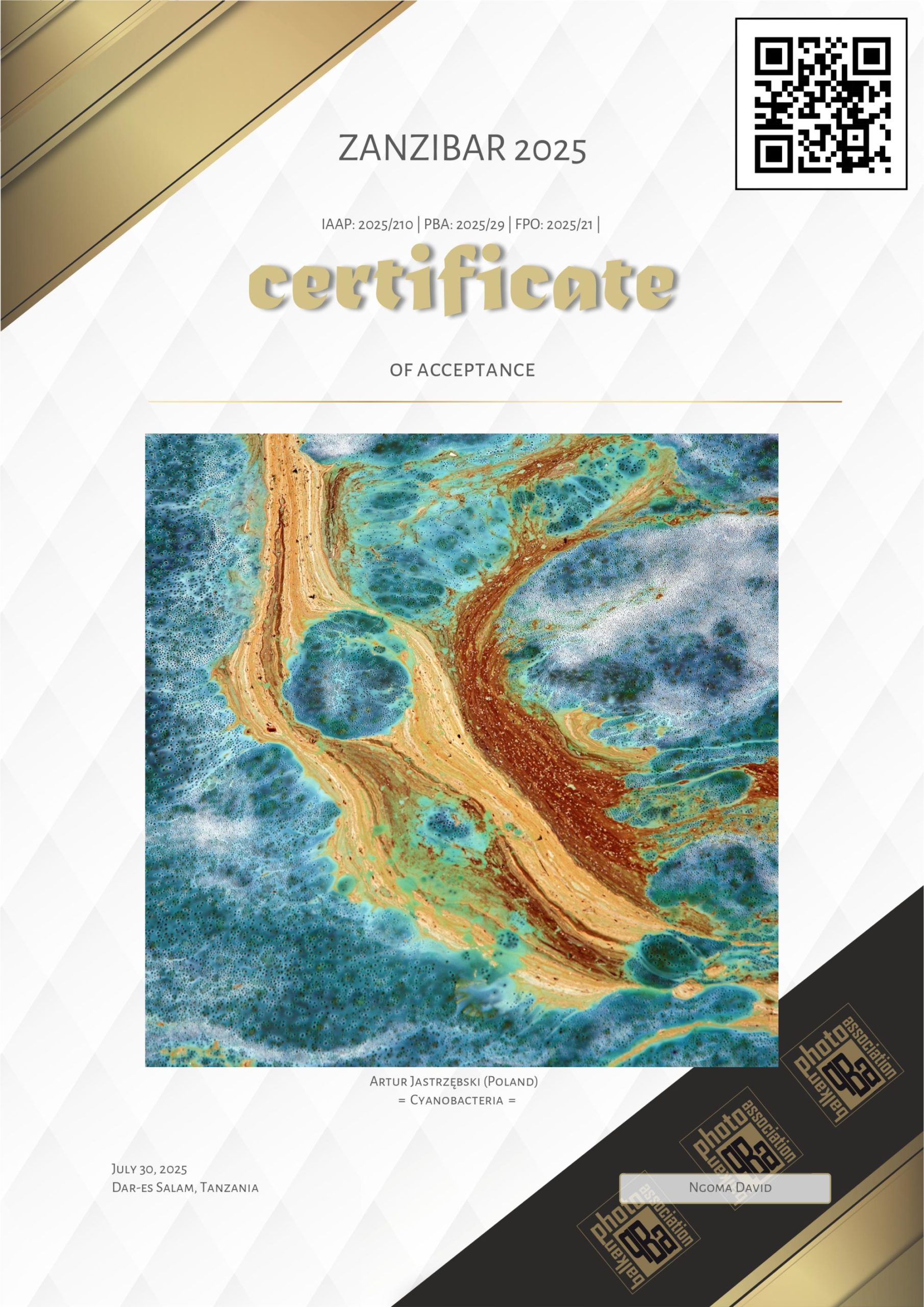 Zdjęcie z cyklu „Sinice” otrzymało „akceptację” w międzynarodowym konkursie fotograficznym Zanzibar Photo 2025 organizowanym przez tanzański Safari Shutter Club.